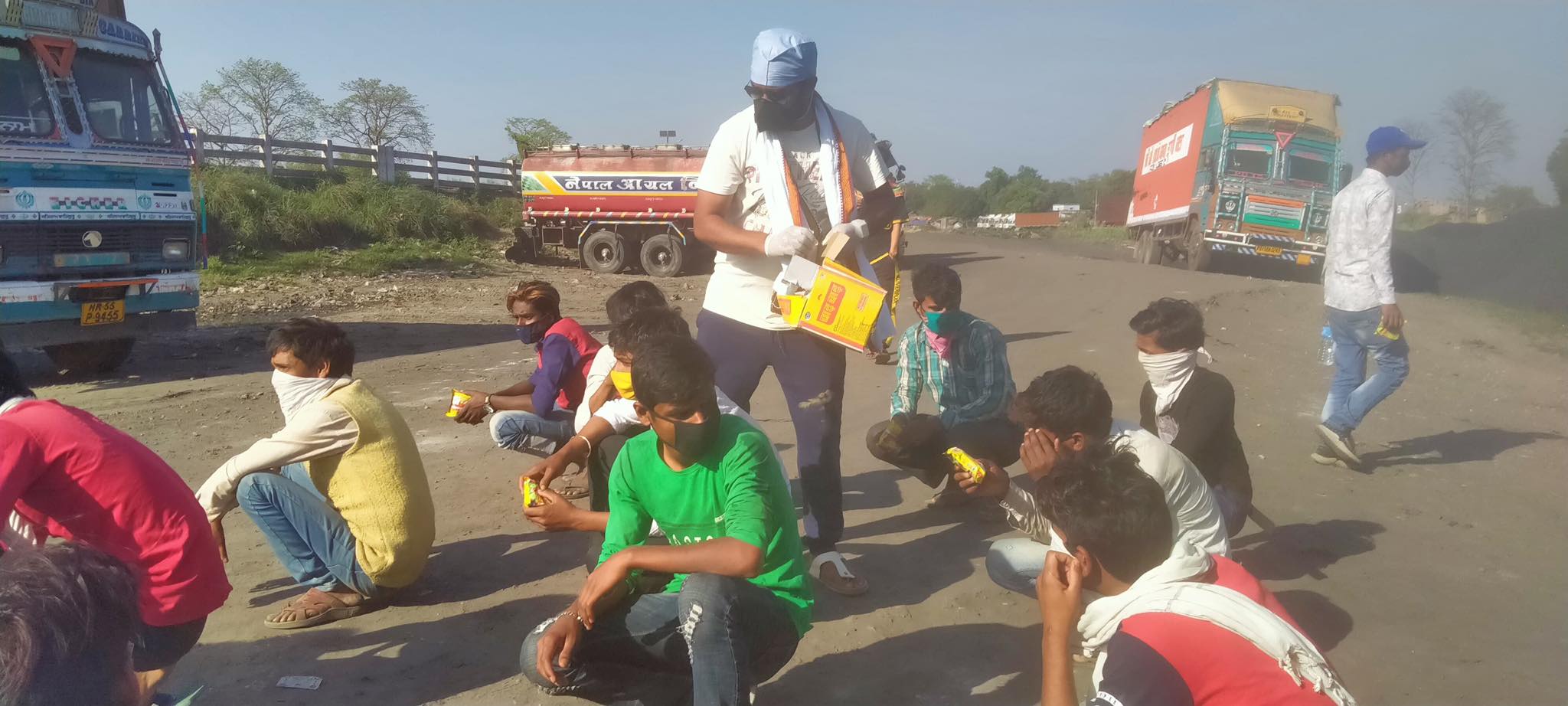 कोरोना भाइरसको (कोभिड–१९) रोकथामका लागी भएको लकडाउनमा केहि दिनदेखी खाना नखाएर वीरगन्ज रक्सौलको मितेरी पुलमा अलपत्र परेका ५ सय जनालाई खाजा वितरण वितरण गरेको हो ।