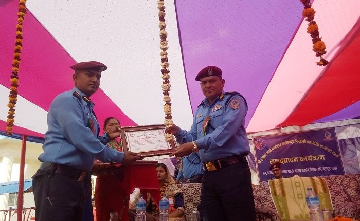 नागरिकको सक्रिय सहभागिता विना प्रहरीलाई शान्ति सुरक्षा कायम गर्न कठिन रहेको समेत उनले बताए । सो कार्यक्रममा बोल्नु हुँदै प्रहरी नायव महानिरीक्षक पालले महिला, वालवालिका र जेष्ठ नागरीक उपर हुने अपराधका घट्नाहरुमा संवेदनशिल हुन र सामाजिक विकृति विसंगतिहरुको विरुद्ध सम्पूर्ण एकजुट भई सहकार्य गरी प्रहरीलाई आफ्नै परिवार र समाजको अभिन्न अड्गको रुपमा लिई सँगसँगै हिडाई प्रहरी सेवा लिनु पर्ने बताउनु हुनका साथै समुदाय प्रहरी साझेदारी अभियानलाई सार्थक बनाउन सबैको सहयोग मिल्ने बिश्ववास समेत ब्यक्त गर्नु भयो । साथै सो अवसरमा भवन निर्माण कार्यमा उल्लेख्य सहयोग पुर्यानउने प्रहरी कर्मचारीहरुलाई प्रशंसा पत्र बितरण गर्नु हुनका साथै कार्यरत प्रहरी कर्मचारीहरुलाई निर्देशन समेत दिनु भयो ।