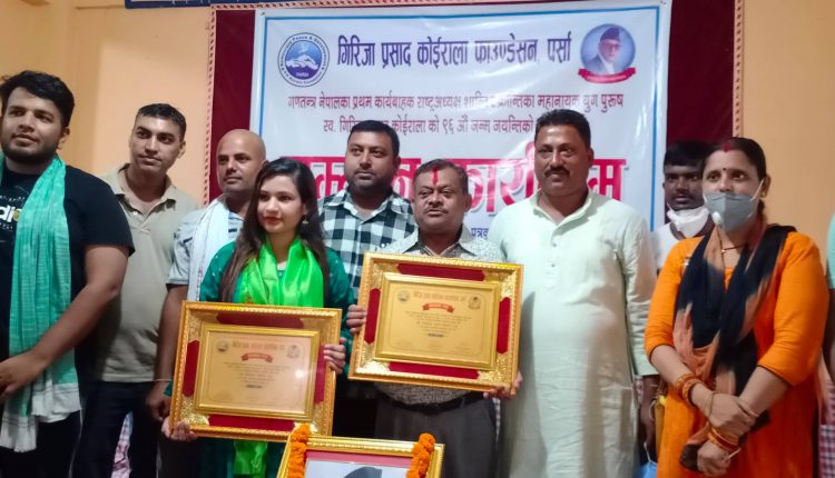 गिरिजाप्रसाद कोइराला फाउन्डेसन पर्साले गणतन्त्र नेपालका पहिलो प्रधानमन्त्रि एवम नेपाली काग्रेसका पुर्व सभापतिको ९६ औंं जन्मोत्सवको अवसरमा फाउण्डेशन पर्साले आज दुई पत्रकारलाई जनही नगद २१ हजार रुपैयाँ सहित सम्मान गरेको छ ।