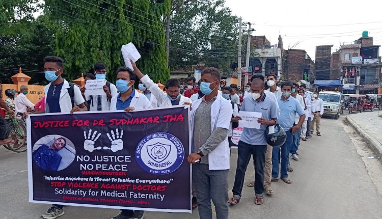 सोसाइटी अफ मेडिकल स्टुडेन्टस्, नेपाल को कार्यकारी सदस्य विवेक माहासेठ र चन्दन यादवको नेत्तृत्वमा भएको उक्त कार्यक्रममा जनकपुरका डाक्टर, मेडिकल विधार्थी र स्थानियहरूको उपस्थित रहेको थियो। प्रदेशिक अस्पताल देखि सुरू भएको जुलुस जनक चौकमा गएर कोण सभामा परिणत भएको थियो। कोण सभामा डा. सुधाकर झा, अभिषेक यादव, चन्दन यादव, विवेक माहासेठ लगायतले मन्तब्य राखेका थिए। कोरोनाजस्तो विपद् को बेलापनि अग्रपङ्तिमा रहेर काम गर्ने डाक्टरहरूमाथि हुने हातपातले मानवतामाथि नै प्रस्न चिन्ह खडा गरेको छ। यस्तो दुर्व्यवहारले मेडिकल विधार्थीको मनोबल घट्न गई सेवाको भावना कम हुनसक्ने मेडिकल विधार्थीहरुले जनाएका छन्।