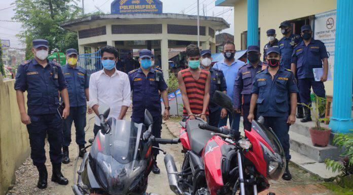 रौतहटबाट मोटरसाइकल चोरी गर्ने २ जनालाइ प्रहरीले गर्यो सार्वजनिक
