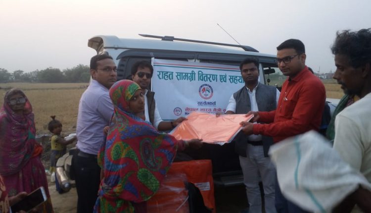 बारा ।। चैत्र १७ गते को साझ आएको चक्रपात भुमरी पिडित परिवारलाई राहत सामाग्री वितरण गरिएको छ। बाराको पर्रसौनी गाउपालिका वाडा न ४ खुटवा टोलमा तीस जना घरवार बिहिन भएका हरु लाइ सहयोग गरिएको छ। नेपाल भारत मैत्री समाज को प्रेसिडेन्ट प्रेम लस्करि को प्रयासमा पिड्त परिवार लाइ राहत प्रदान गरिएको छ। सर्वस्व गुमाएका परिवारले धैर्यता समेत गुमाई सकेका हरु लाइ सहयोगी हाथाहरु ले बिपत को बेलामा धैर्यता पलायन हुन् नदिन लाइ आवस्यक समान हरु प्रदान गरेका छन् । दैनिक उपभोग्य बस्तु झुल १६० थान, सेनेटरी पेड २ कार्टुन, साबुन २ कार्टुन, त्रिपाल ११० थान, चाउचाउ ६ कार्टुन लगायत का सामग्री हरु वितरण गरेका छन् ।