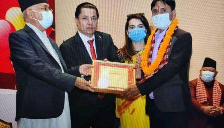 प्रधानमन्त्री के पि शर्मा ओली द्वारा प्राइम टेलिभिजन बारा संबादाता श्रीकान्त गुप्ता सम्मानित