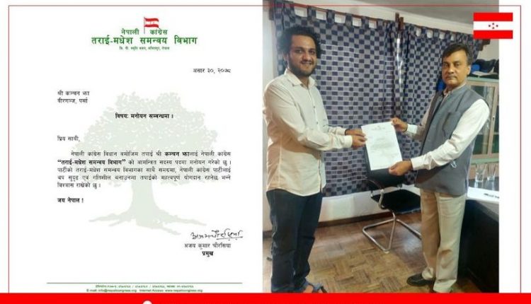 निश्छल प्रेम, निश्छ्ल भवाना नै वास्तविक प्रमात्माको प्राप्तिको मुख्य द्वार भए झै झाले पनि त्यसै अनुरुप उचित स्थान पाएका हुन। मंगलबार सामाजिक सञ्जालको फेसबुकमा एक पोष्ट साझागर्दै झाले आफु विभागको सदस्यमा नियुक्त भएको जानकारी गराएका हुन् । यसअघि विभिन्न सामुदायिक अभियान तथा अन्तर्राष्ट्रिय सञ्चार माध्यमहरुमा मधेश मुद्दाको सशक्त वकालत गर्दै आएका उनी विभागको सदस्यमा नियुक्त भईसके पछि अब तराई मधेशको मुद्दालाई पार्टीको केन्द्रिय स्तरमा प्रत्यक्ष रूपमा पहल गर्ने छन् ।