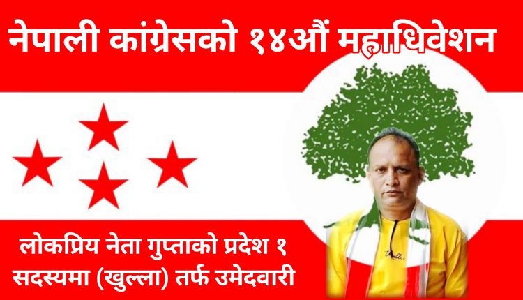 मंसिर १८ गते शनिवार बिराटनगरमा हुन गईरहेको नेपाली कांग्रेसको १४औ महाधिवेशनमा गुप्ताले खुल्ला तर्फ १ नं. प्रदेश कार्यसमितिको सदस्य पदमा उमेदवारी दिएका हुन । राजेश गुप्ता नेपाली कांग्रेसको सक्रिय बहुचर्चित नेता हुनुको साथसाथै एक असल समाजसेवी तथा अभियान्ता भनेर पनि आफ्नो पहिचन बनाएका छन् । गुप्ताको लोकप्रियता आफ्नो निर्वाचन क्षेत्रमा मात्र नभई देशै भरी चर्चित नेता मध्ये एक हो । सामाजीक कार्यहरु गरेर चर्चामा आईरहने नेता गुप्ताको शुभचिन्तहरु पनि प्रसस्तै रहेका छन् ।