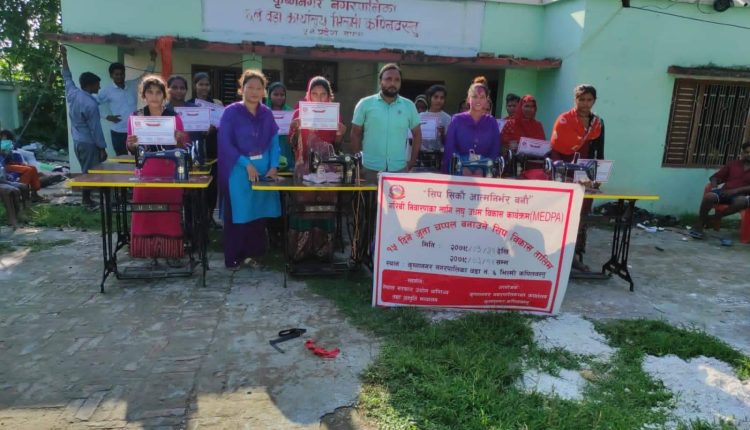 कपिलवस्तु जिल्लाको कृष्णनगर नगरपालिका वडा नं ६ वडा कार्यालयको भवनमा झोला तथा जुत्ता चप्पल बनाउने पन्द्रह दिने तालिम समापन सहित प्रविधि हस्तान्तरण गरिएको छ l ” सिप सिकौ आत्मनिर्भर बनौ” भन्ने मूल नाराका साथ