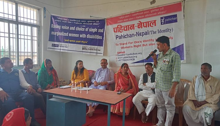 आज आदर्श कोतवाल गाउँपालिका अन्तर्गत पर्ने बि. पी. नेत्र प्रतिस्ठान हरनैहिया चौकको सभा हलमा रास्ट्रीय एकता र समावेशीताको आधार सुनिश्चित गरौ, अपाङ्गता भएका एकल र पिछडिएका महिलाहरुको अधिकार, नाराका साथ पहिचान नेपालको आयोजना तथा मिथिला सारथि समाज नेपालको सहकार्यमा disability Rights found परियोजना अन्तर्गत अन्तरक्रियात्मक गोष्ठी गरिएको हो।