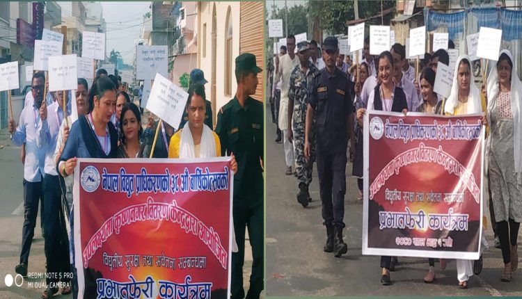 नेपाल विद्युत प्राधिकरणको ३८ औं बार्षिकोत्सवको उपलक्ष्यमा कृष्णनगर वितरण केन्द्रले विद्युतीय सुरक्षा तथा सचेतना सम्बन्धमा प्रभातफेरी कार्यक्रम गरेर मनाएको छ।