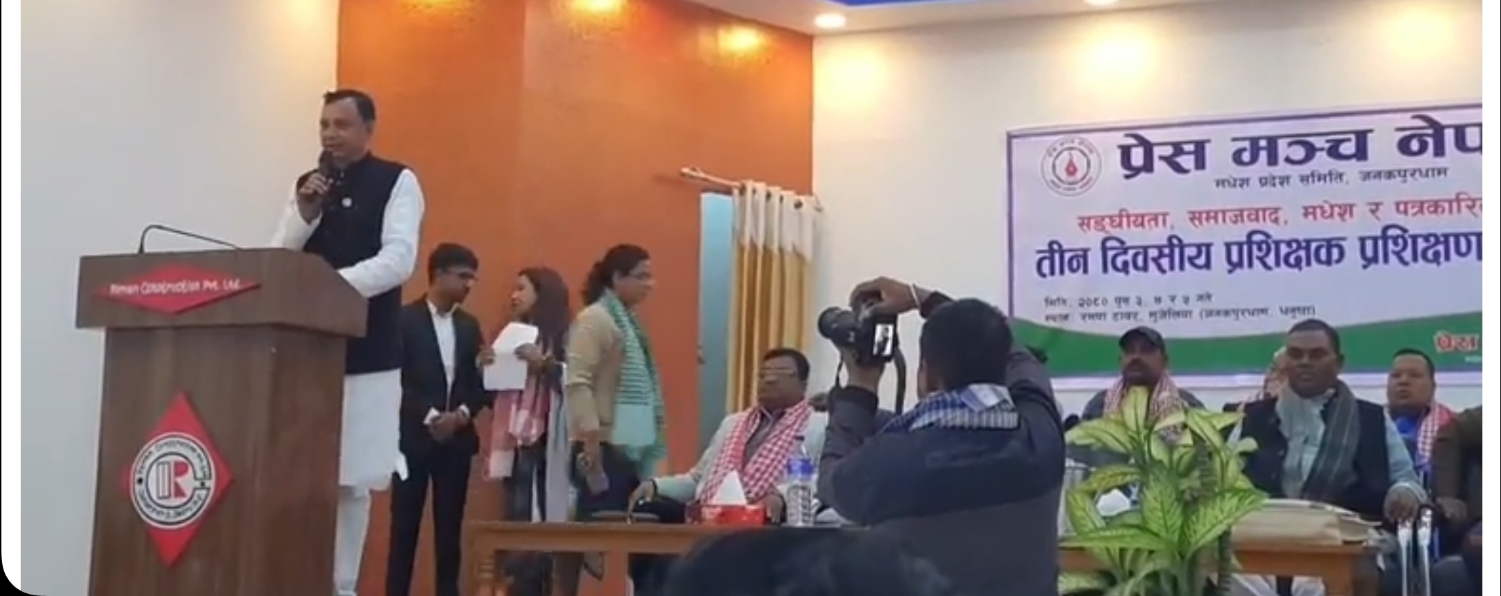 धनुषाको जनकपुरधाम मुजेलिया स्थित रमन टावरको सभाहलमा सुरु भएको कार्यक्रममा जनता समाजवादी पार्टी नेपालका अध्यक्ष माननीय उपेन्द्र यादवको प्रमुख आतिथ्य तथा मधेश प्रदेशका मुख्यमन्त्री सरोज कुमार यादवको विशिष्ट आतिथ्यतामा जसपा नेपालको शिर्षनेता एव मधेस प्रदेशका आठैवटा जिल्लाका प्रेस मञ्चका अध्यक्ष तथा सदस्य पत्रकारहरुको उपस्थितिमा कार्यक्रमको उदघाटन गरिएको हो।
