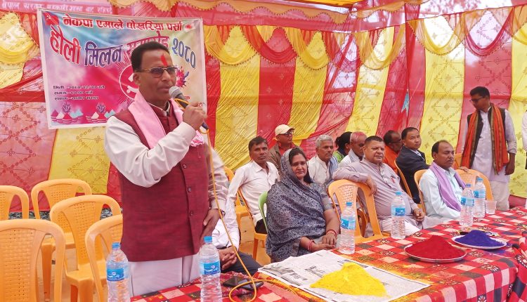 ने का पा एमाले पोखरिया नगर कमिटीले आयोजना गरेको होली मिलन समारोह आज एक कार्यक्रमको बिच पोखरियामा सम्पन भयको ने का पा एमाले पोखरिया नगर कमिटी अध्यक्ष बिंधालच ठाकुरले जनायका हुन ।