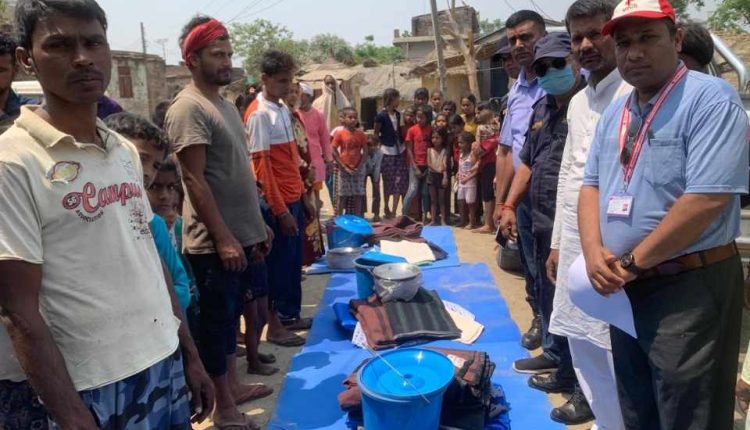 अग्नि पिडित गुलरिया गाउँ निवासी राजिन्द्र राउत कुर्मी, फरिन्द्र राउत कुर्मी , रविन्द्र पटेल , मनिफ मियाकाे घरमा आगलागी भएपछि रेडक्रसले राहत बितरण गरिएको छ।