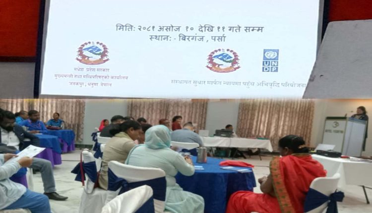 तर सबैको सहभागीताको हस्ताक्षर देखाई रकम आफै राखी दुरुपयोग गर्ने संकेत देखा परेको छ । तालिममा पर्साका पालिकाहरुको गाउपालिका अध्यक्ष, उपाध्यक्ष सहित न्यायकि समितीका कर्मचारी तथा पदाधिकारी, अधिवक्ता, सरकारी वकिल कार्यालयका कर्मचारी, जिल्ला प्रशासन कार्यालयका कर्मचारी, जिल्ला प्रहरी कार्यालयका कर्मचारी तथा गैरसरकारी संस्थाका सदस्य तथा पदाधिकारीहरुको सहभागीता रहेको थियो ।