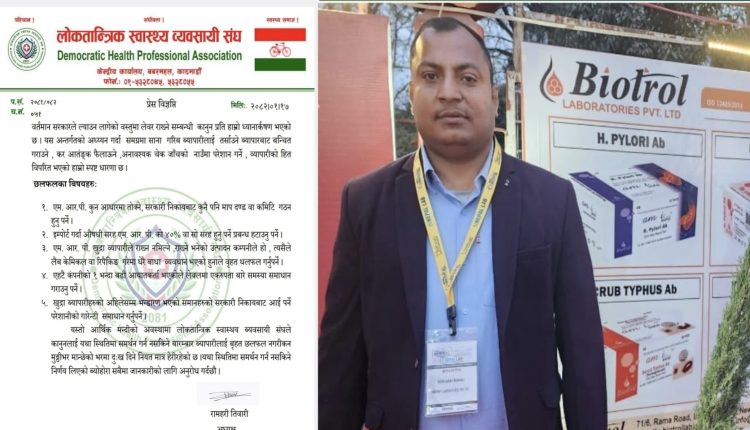 सरकारले ल्याउन लागेकाे एमआरपी कानुन सम्बन्धि लाेकतान्त्रिक स्वास्थ्य व्यवसायी संघले गम्भीर ध्यानाकर्षण भएको जनाएको छ ।