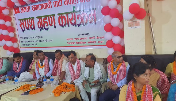 जनता समाजवादी पार्टी नेपालको सपथग्रहण कार्यक्रम सपथ लिएका छन्। बारा जिल्ला कार्य समितिले सहमतिमा कार्य समिति चयन गर्न नसकी चुनावी प्रक्रिया बाट निर्वाचनको माध्यमले निर्वाचित हुँदै शुक्रवार वैशाख २६ गते सपथ लिएका छन्।