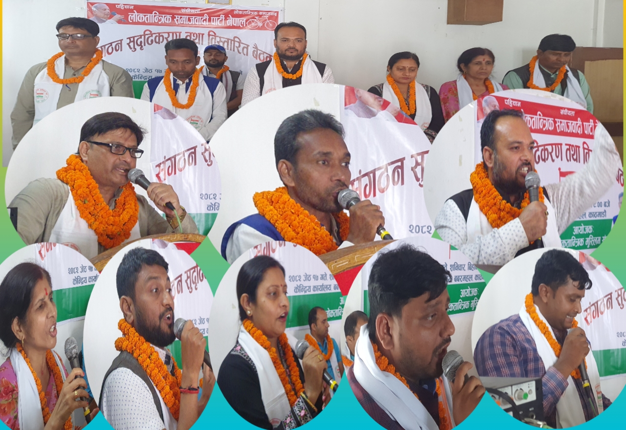 लोकतान्त्रिक समाजवादी पार्टी नेपालको संगठन सुदृढीकरण तथा विस्तारित बैठक लोकतान्त्रिक मुस्लिम संघको आयोजनामा गरिएको हो। मुस्लिम संघका केन्द्रिय अध्यक्ष डा. कमरुल्लाह अंसारीको अध्यक्षता तथा पार्टीका प्रवक्ता एवं उपाध्यक्ष डा. अभास लाभको प्रमुख आतिथ्यतामा बैठक भएको हो। मुस्लिम समुदायलाई संगठनलाई कसरी अबल र सबल हुन सक्छ भन्ने बारेमा व्यापक छलफल गरिएको हो।