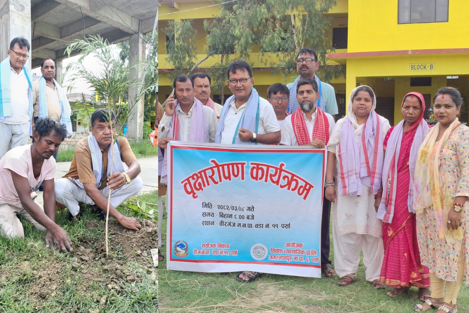 वीरगंज महानगरपालिका वडा नं. ११ काे कार्यालयकाे संयाेजन र सिवांश व्यवसायिक प्रा.लि. जगरनाथपुर गा.पा. ५ पर्साकाे आयाेजनामा बृक्षाराेपण कार्यक्रम सम्पन्न भएकाे हाे । कार्यक्रम अन्तर्गत विद्यालयकाे फिल्डका विभिन्न प्रजातिका १५० वटा विरुपा राेपिएकाे आयाेजकले जनाएकाे छ ।