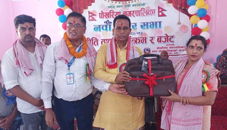 को पोखरिया नगरपालीकाले आज एक कार्यक्रमको विच सर्वसहमतले २०८२–०८३ को नवाँै नगर सभा बाट ४४ करोड ४० लाख २७ सजार,४सय ४८ अठचालीस रुपैयाको बजेट प्रस्तुत गरेको छ । नवौँ नगर सभाको निति तथा कार्यक्रम र बजेट प्रस्तुत नगर प्रमुख तथा उप प्रमुख द्धारा हस्तानतरीक बजेट बुक नगरपालीको प्रमुख प्रसाकिय अधिकृत रामविन्य कुमार सिँहले प्रस्तुत गर्नु भएका हुन ।