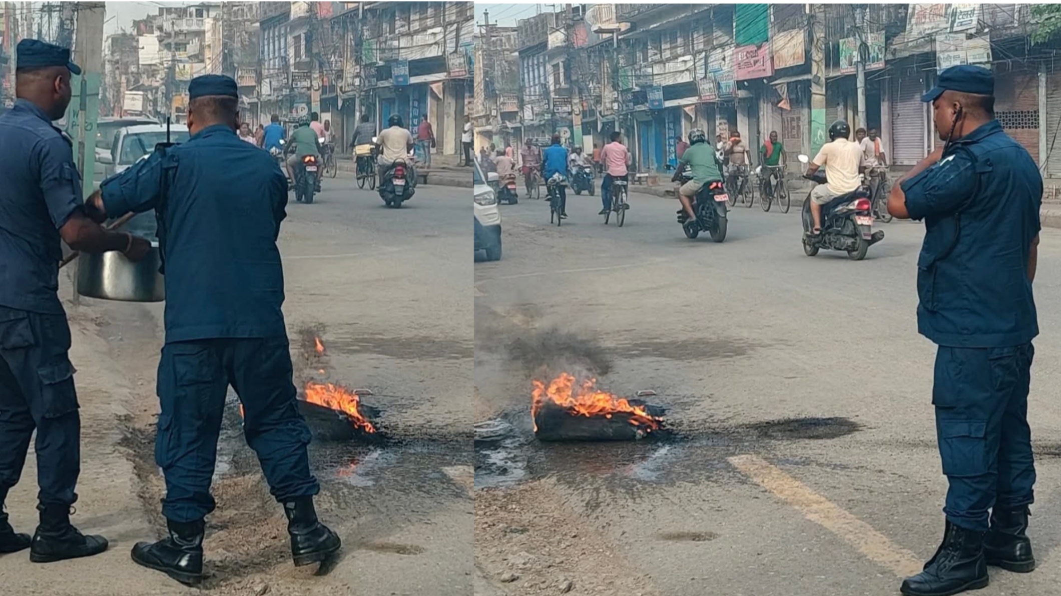 प्रदर्शनको क्रममा व्यापारीहरूले “व्यवसायको विनाश, विकास होइन” र “जनताको घर टुटाउने काम बन्द गर” जस्ता नारा लेखिएका प्लेकार्ड बोकेका थिए। टायर बालेर अवरुद्ध गरिएको सडकमा प्रहरी परिचालन गरिएको थियो, तर झडपको स्थिति भने सिर्जना भएको छैन।