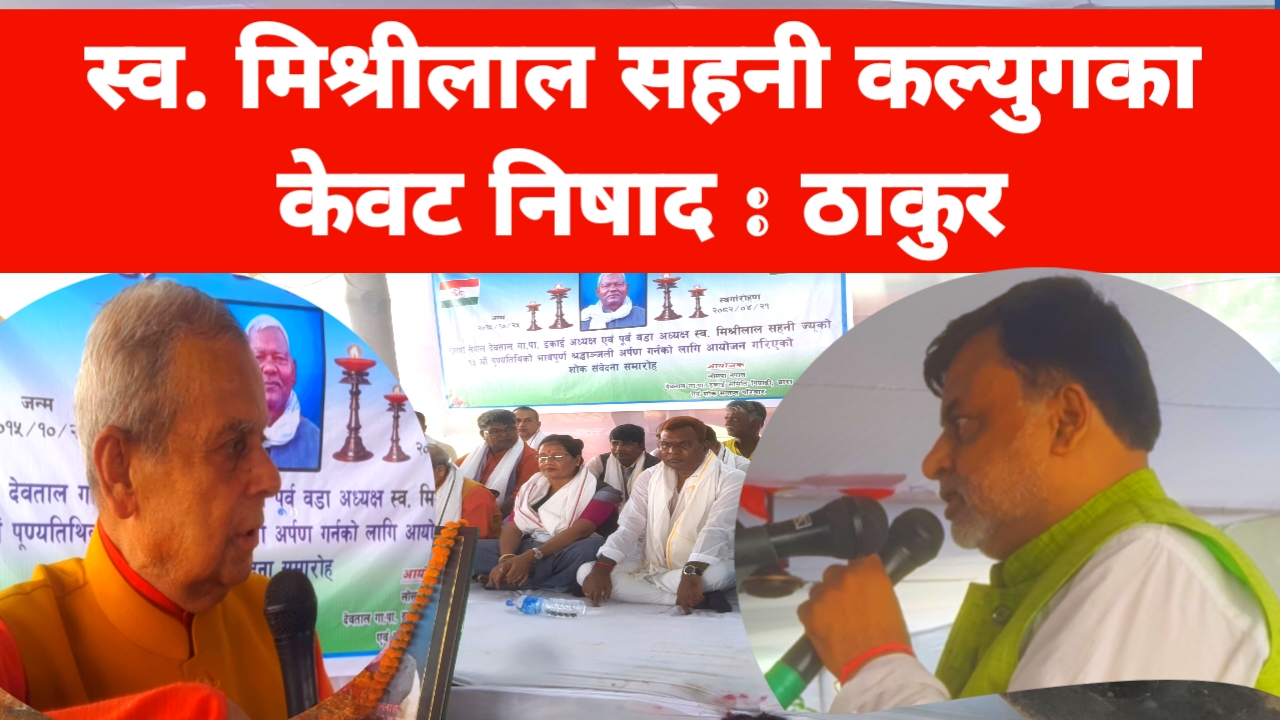 स्व. मिश्रीलाल सहनीको तेर्हौ पुन्यतिथिमा लोसपा नेपाल अध्यक्ष ठाकुर द्वारा श्रद्धाञ्जली सभा गरिएको हो। माननीय महन्त ठाकुरको प्रमुख आतिथ्यतामा श्रद्धाञ्जली सभाको आयोजना गरिएको हो। लोसपा नेपाल देवताल गा.पा. इकाई समिति पिप्राढी, बाराको एवं शोक सन्तप्त परिवारको आयोजनामा सभा गरिएको थियोे।