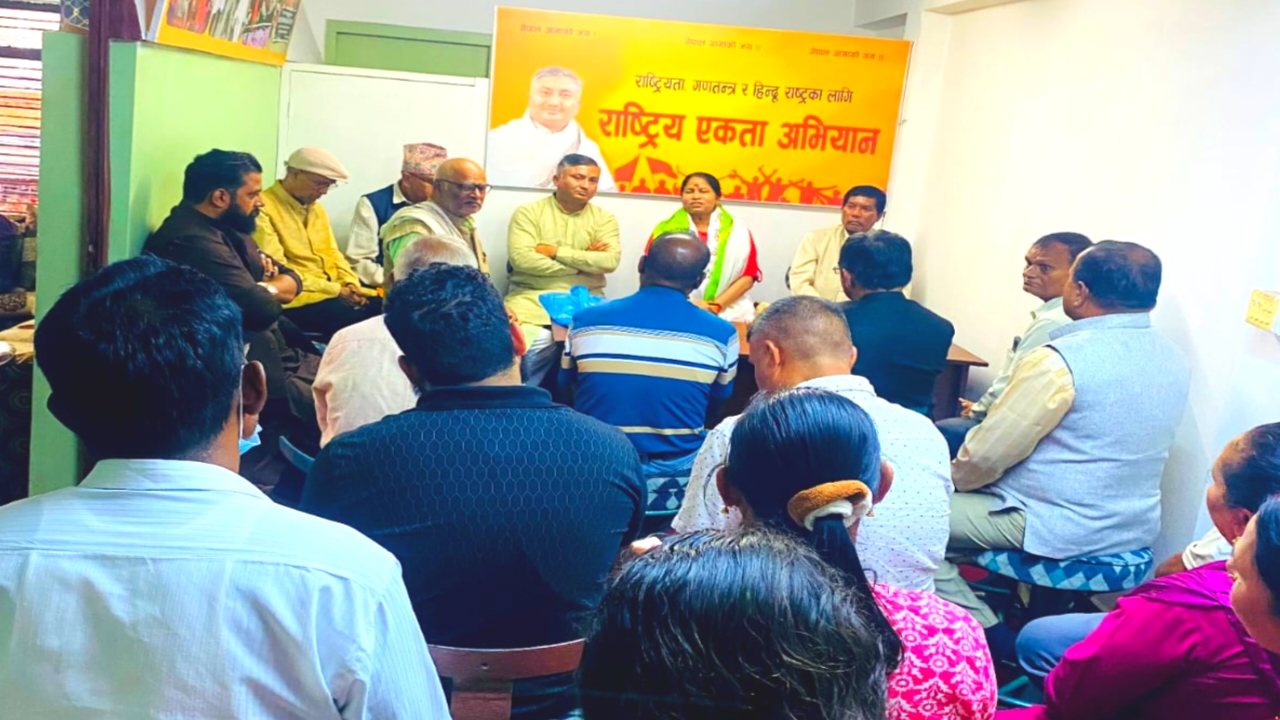 राष्ट्रिय एकता अभियानद्वारा आयोजित विशेष कार्यक्रम अन्तर्गत श्री श्री १००८ महामंडलेश्वर श्री सरिता गिरीज्यूको उदबोधन कार्यक्रम सम्पन्न भएको छ। सनातन संस्कृति संरक्षण र हिन्दुत्व जागरणका उद्देश्यका साथ भ्रमणमा रहनु भएकी महामंडलेश्वर गिरीले कार्यक्रममा राष्ट्रिय एकता अभियानको संरक्षकको जिम्मेवारी निर्वाह गर्ने प्रतिवद्धता समेत व्यक्त गर्नुभयो।