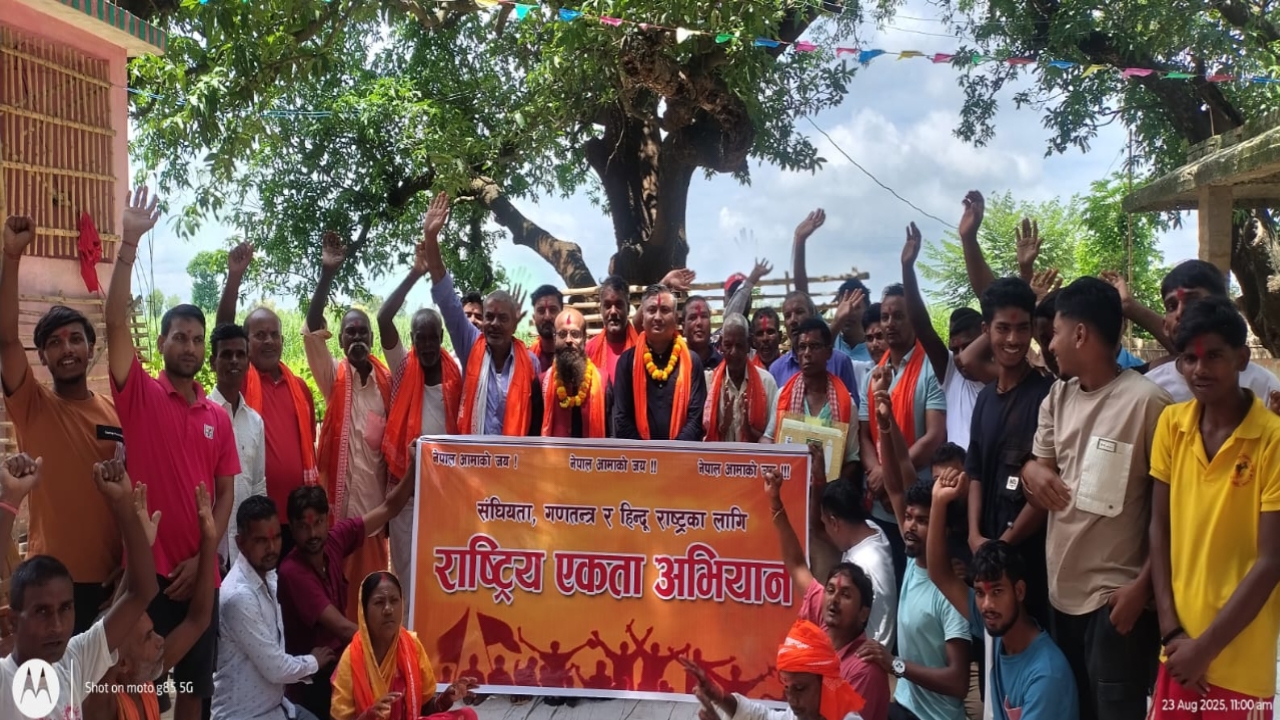 बाराको परवानीपुर गाउँपालिका स्थित बुनियादमा राष्ट्रिय एकता अभियान बाराद्वारा आयोजित भेलामा सम्बोधन गर्दै अभियानका केन्द्रीय अध्यक्ष विनय यादवले हिन्दू राष्ट्र घोषणाका लागि अब हिन्दुबादीहरु राजनैतिक रुपमा संगठित हुनुपर्ने आवश्यकता औंल्याएका छन्।