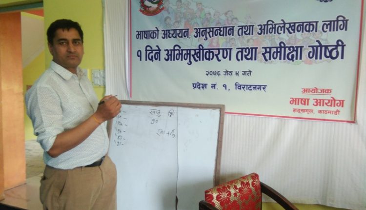 विराटनगर । भाषाको अध्ययन अनुसन्धान तथा अभिलेखनका लागि विराटनगरमा एक दिन अभिमुखिकरण तथा समिक्षा गोष्ठी सम्पन्न भएको छ ।