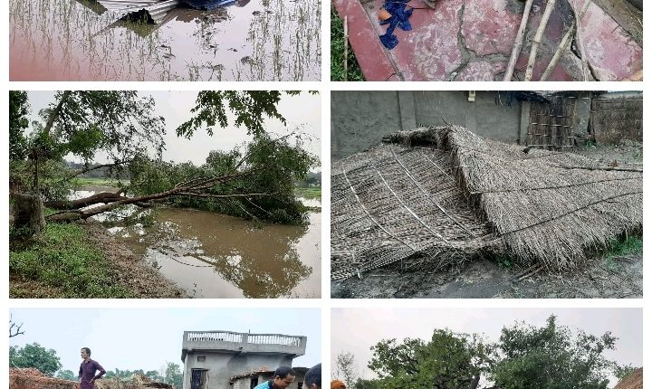 आदर्श कोतवाल गाउँपालिका जमुनिया टोल वडा न.८ मा आइतवार राती हावाहुरी र बर्षाका कारण १४ वटा घर लाइ छ्ती पुर्याएको छ । राती ३ बजेको समयमा आचानक (टाेनारडाे) काे समान्य रुपमा आएको हावाहुरीले तथा पानीले घर र आसपासका रुख बिरुवा समेतलाई उखेलेर फालिदिएको छ। उक्त हावाहुरीले चन्द्रिका साह, शेख रोजि आलम, शेख मोमताज चन्देश्वर साह, शेख सफुरुदिन, शेख आलम, उम्माशकर शाह, लगाएतको घरको छानो उडाएको छ।