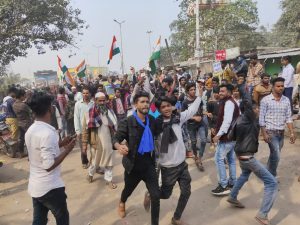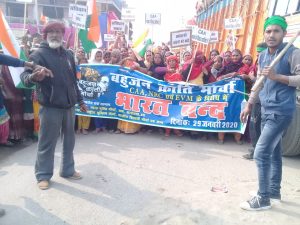 सीसीए व एनआरसी के खिलाफ भारत बंद का आह्वान पर बुधबार को बहुजन क्रांति मोर्चा के बैनर तले विशाल जुलूस निकालकर उग्र प्रदर्शन किया गया । जुलूस में शामिल महिला , युवा , बच्चे , बृद्ध हमे चाहिए आजादी आदि के गगनभेदी नारे लगा रहे थे ।